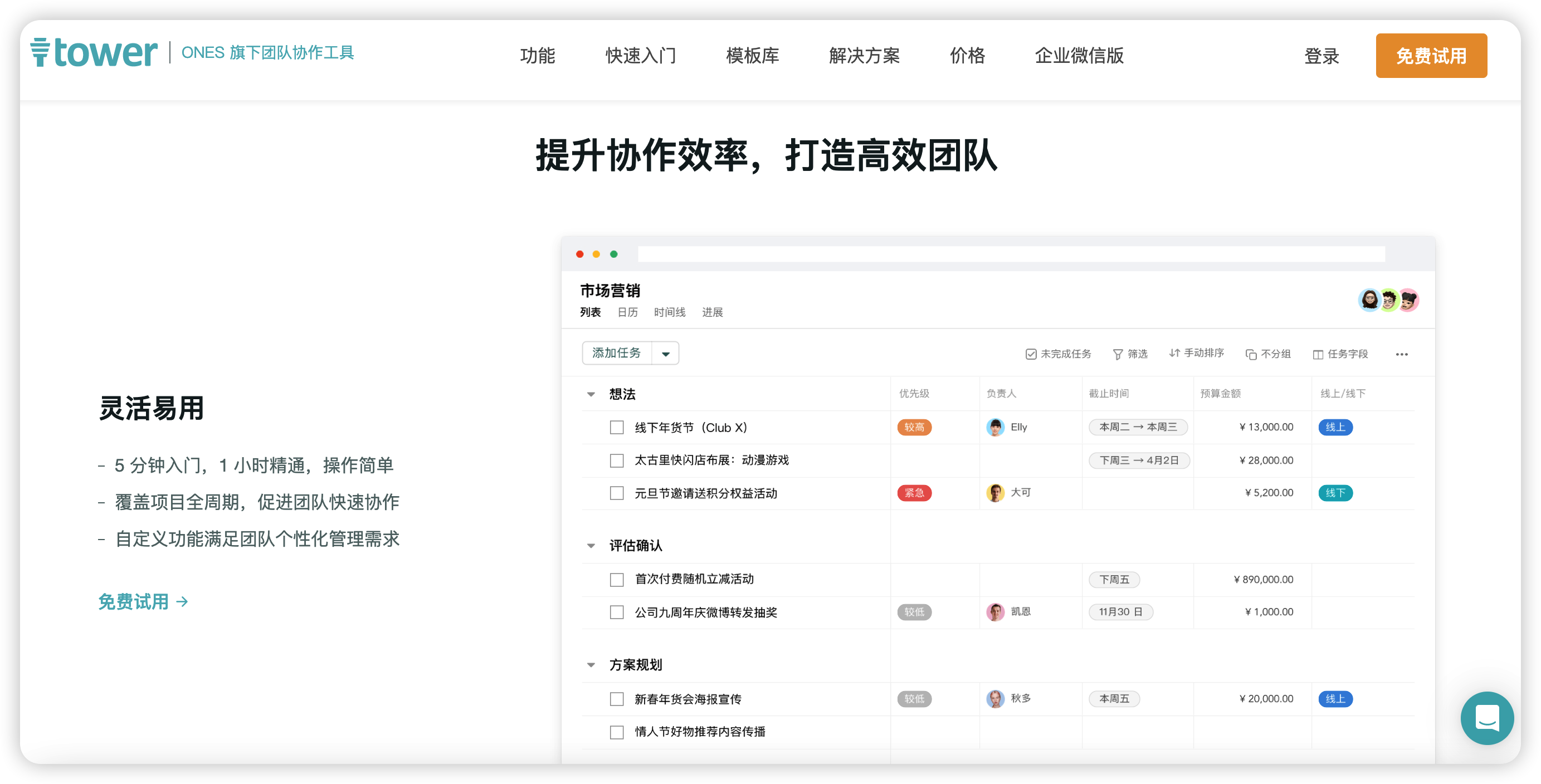 以上就是软件研发规划的基本介绍啦,希望可以帮到你,如今也越来越多研发团队使用在线协作工具进行软件研发规划和管理,以 Tower 为例,Tower 覆盖了需求管理、产品设计、研发管理、产品运营等各类场景,团队可以将软件研发相关的工作通过 Tower 在线化,实时共享任务信息和进度,及时沟通,沉淀相关文档,让工作更高效。